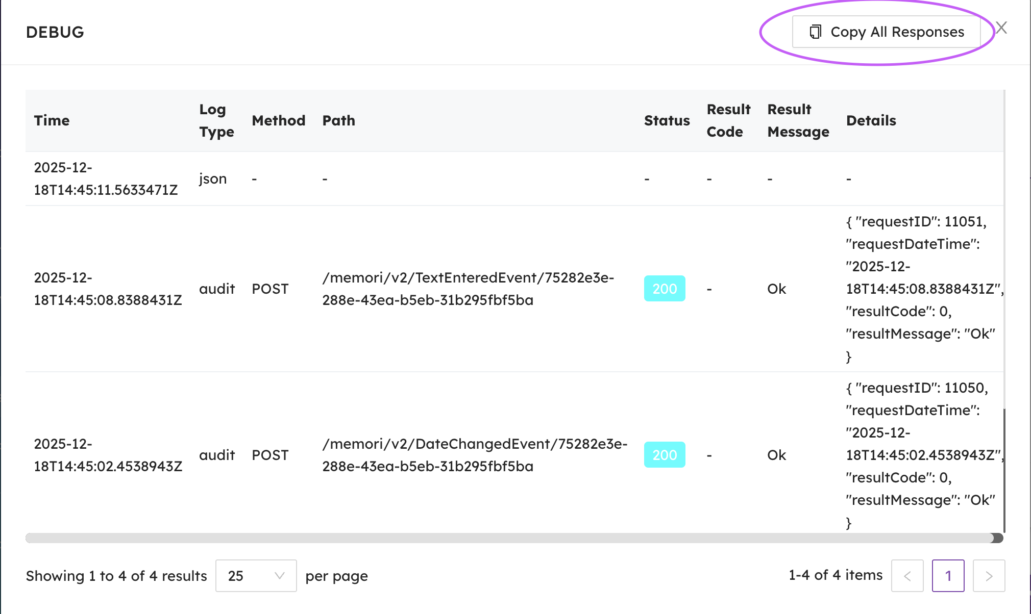 - In the DEBUG section at Conversations we added a button on the top right corner in order for the user to easily “copy all responses”.