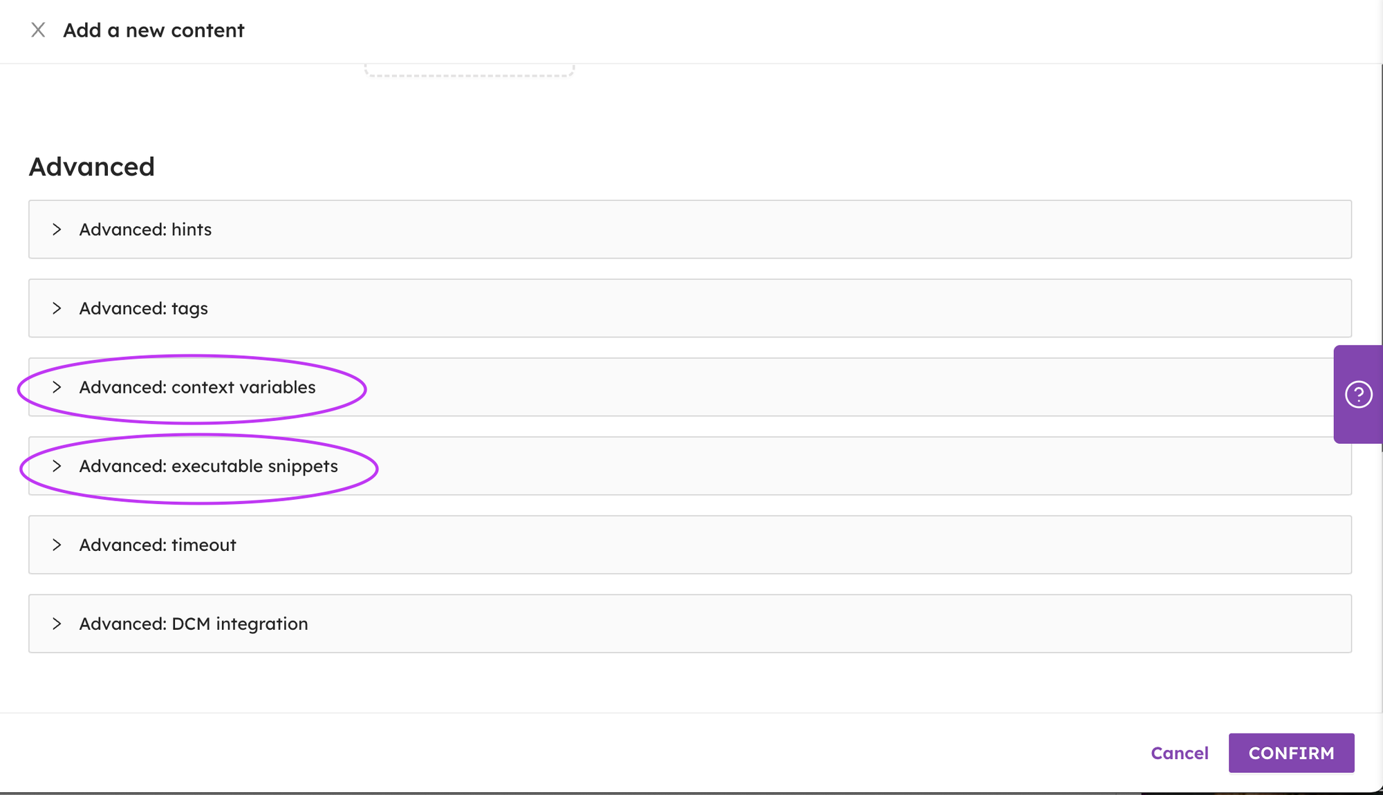 - We did a few updates more specifically on renaming."Preformatted text" is now called "Executable snippets" and "Context management" is now "Context variables"